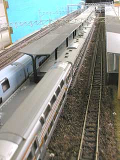 前回でお見せした屋根の部分はこうなりました。 さらに停止位置表も整備され、駅近辺は駅舎の最終仕上げと、 細部調整だけになりました。 他のボードも最終調整なので、工事自体は一段落です。
